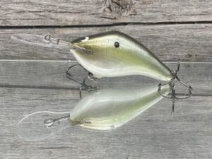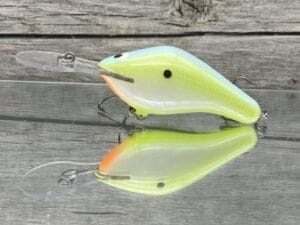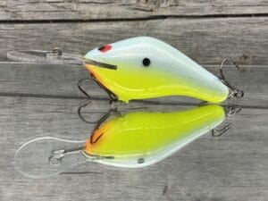 The Black Label Balsa – 300 Proof is built with summertime offshore cranking in mind. Designed with a custom cut lexan spoonbill shaped lip, the 300 Proof delivers great castability, fast diving, and somewhat of a more subtle action and vibration than most other baits in its class. The 300 Proof was also designed to not pull overly hard… making it easier to fish with all day without totally wearing yourself out. The balsa body delivers a great fast flotation quality that helps the bait free itself from any cover it comes in contact with. The 300 Proof is the perfect crankbait for fishing points, channel drops, shell beds, brush piles, flooded timber, rockpiles, ledges, and any other offshore cover you may find. The Black Label 300 Proof also features an old school design lead tuning button in the lip helping keep a bait with a larger lip, such as this one, tuned much better and stay tuned much longer.