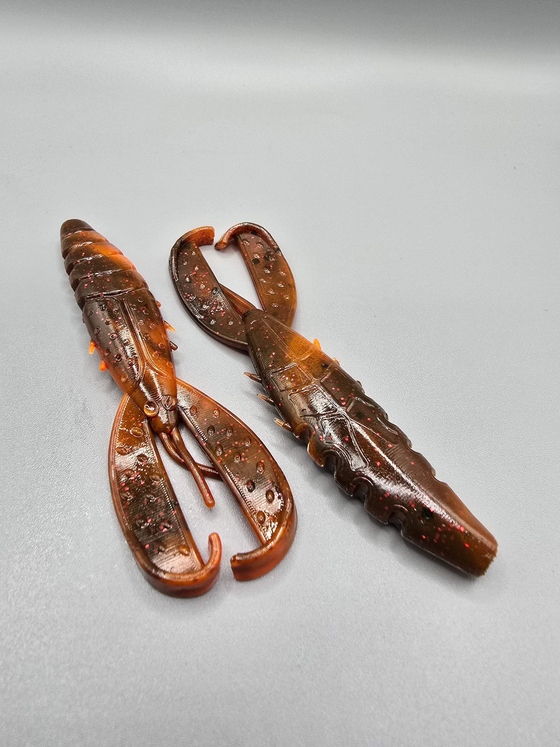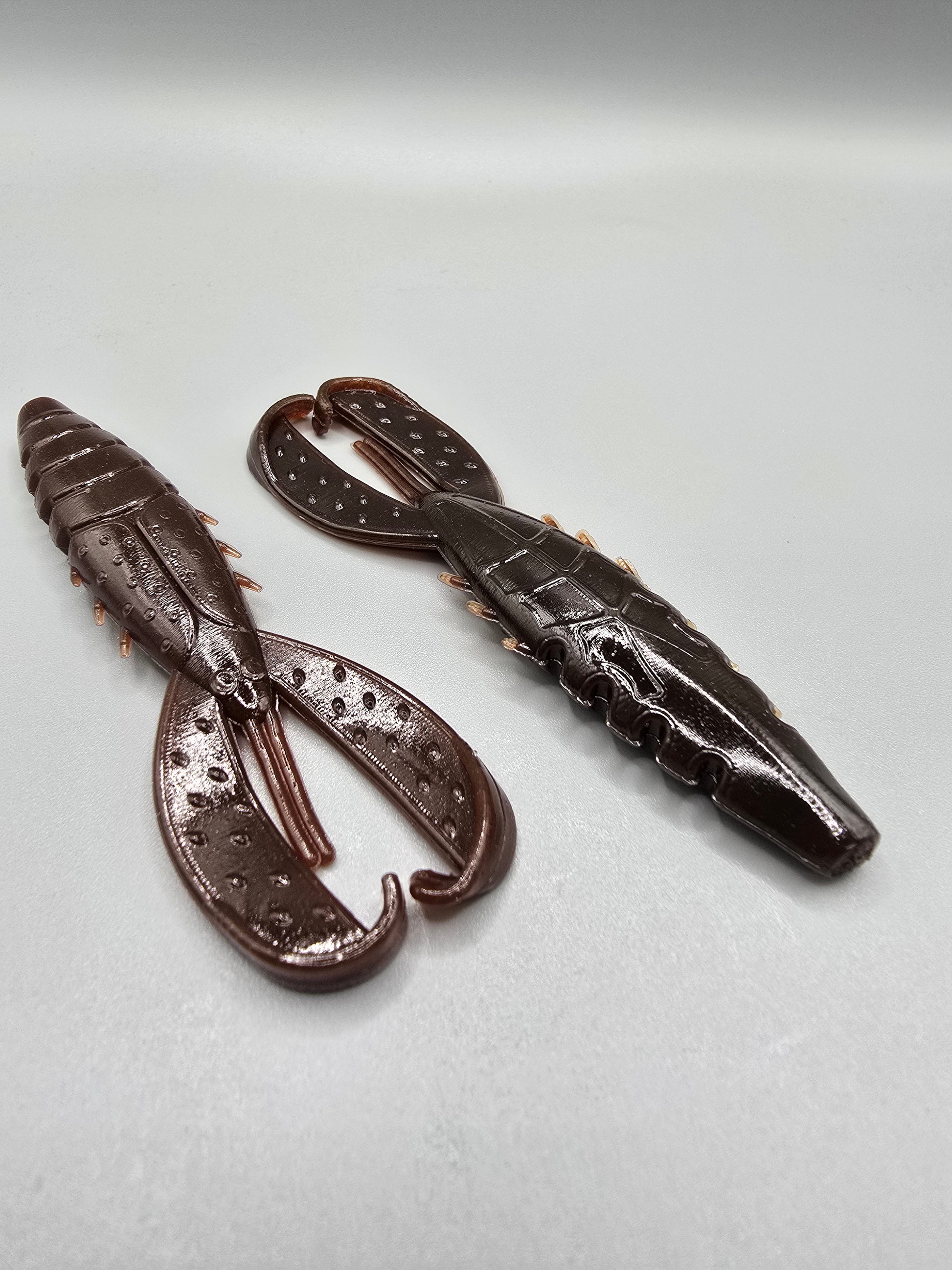 Built with a sexy realistic slender crawfish body and twin swimming tails that move and swim with the slightest twitch, the CP Craw is money when rigged alone, as a trailer on any jig, a great bladed jig trailer, and is perfect for a finesse buzz-bait body. The CP Craw also has a slightly wedged-out beefy head making it hold a hook better when Texas rigged and stay in place better when used as a trailer.