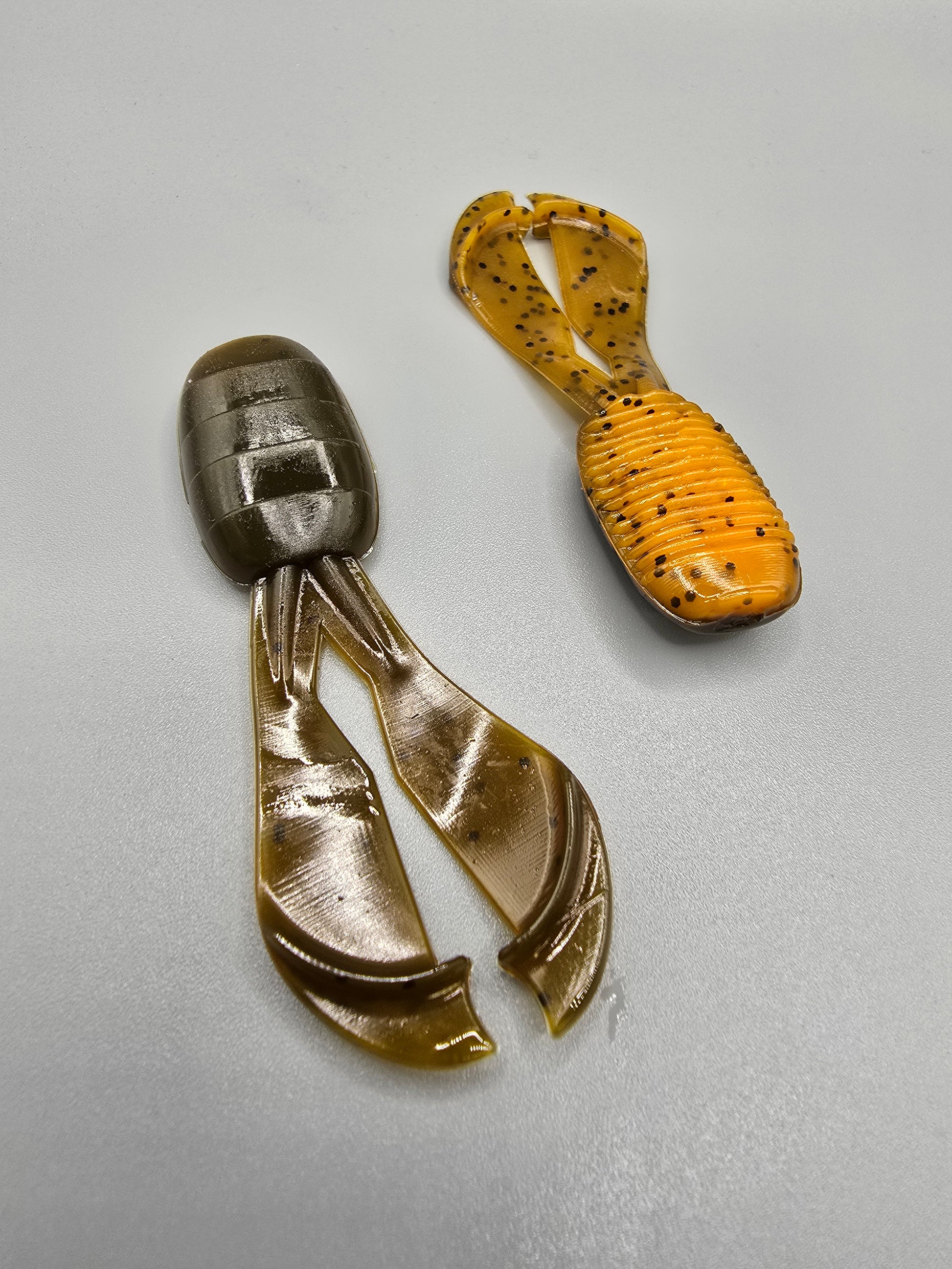 Using Missile Baits shapes and signature patterns, the new 3" Mini D Chunk fits on any compact or finesse type jig and has two flappers that kick hard when pulled through the water. The flat chunk body helps a jig skip better and helps flair out a skirt.
